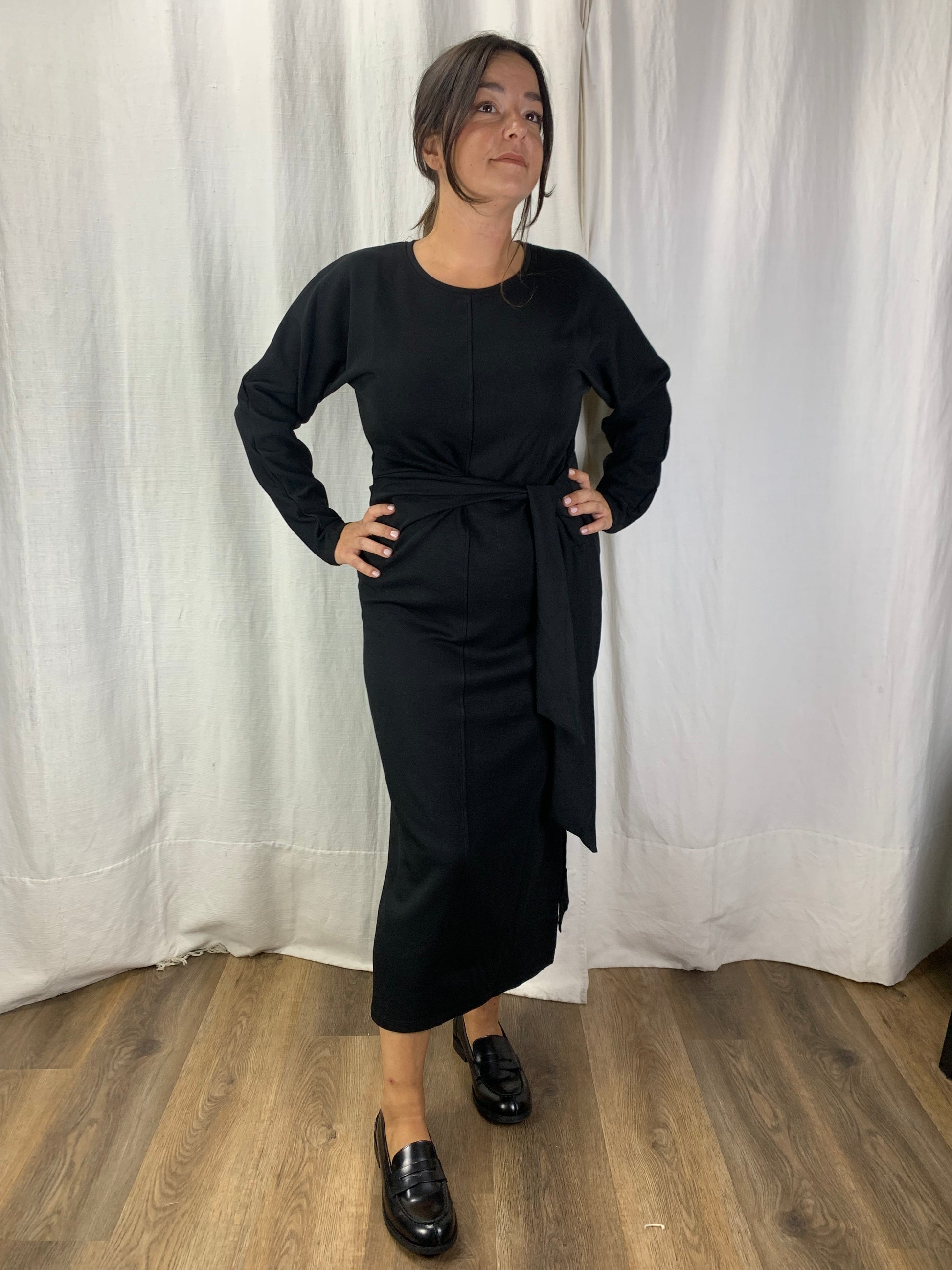 un abito che ha il sapore del tubino ma in tessuto elasticizzato ed ecco da dove viene la sua versatilità!puoi portarlo con una scarpa bassa come mocassino o sneakers per essere comoda ma raffinata al lavoro o con uno stivale o un tacco per la sera per un look sporty chic.