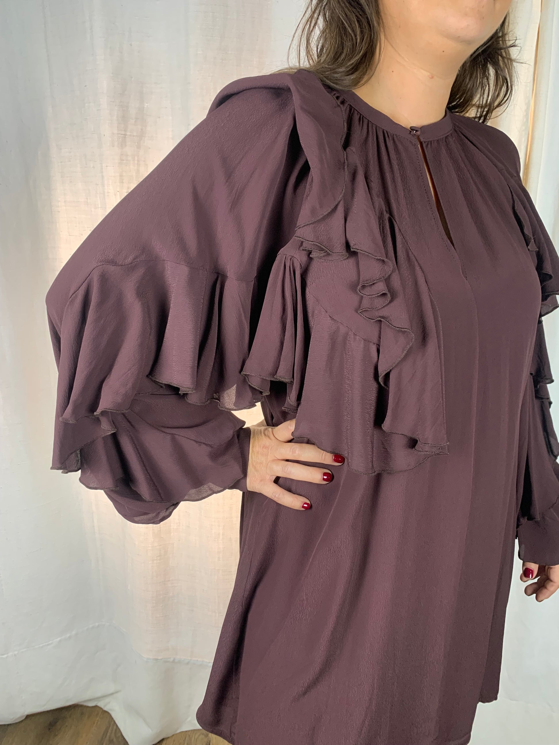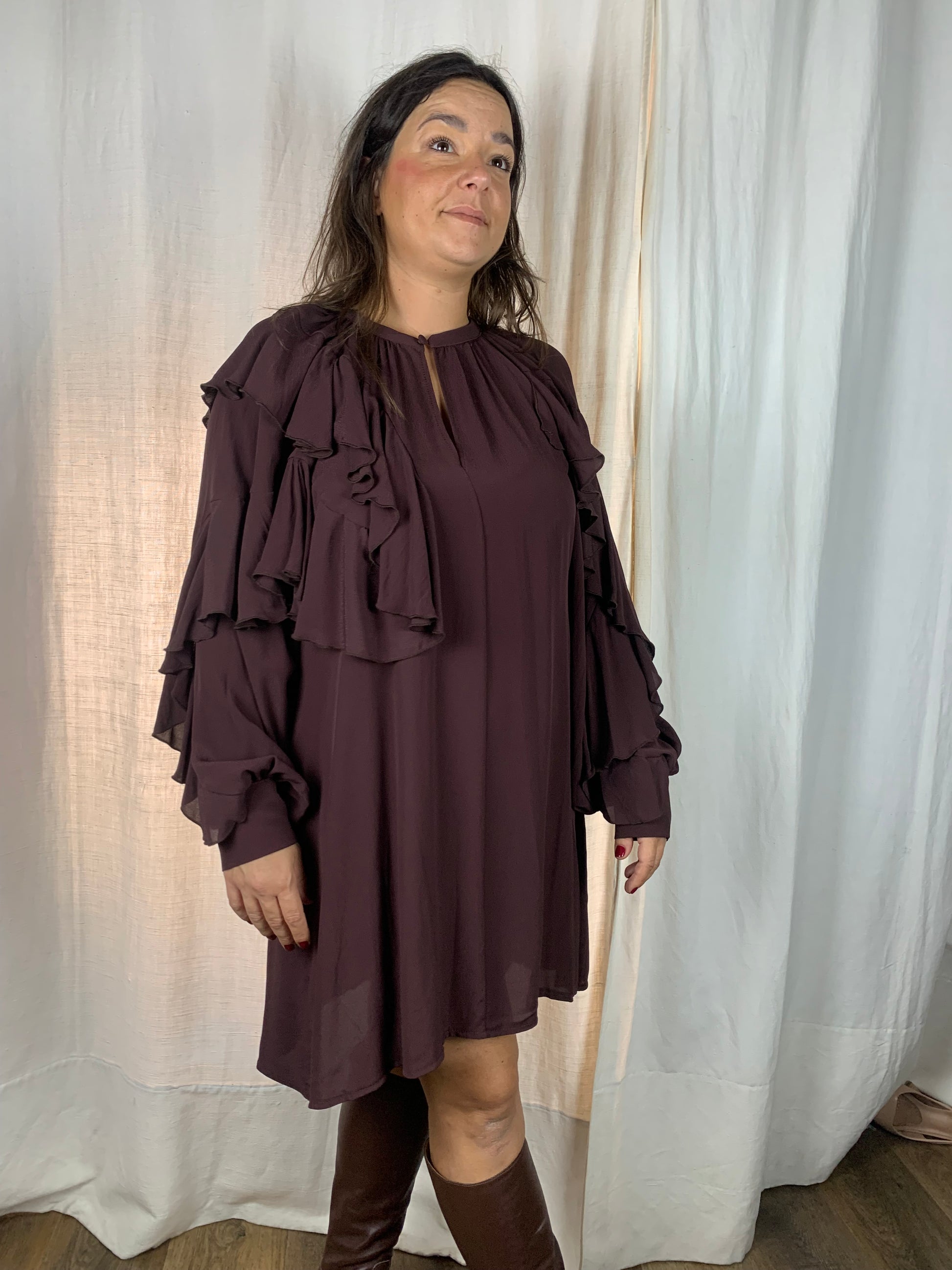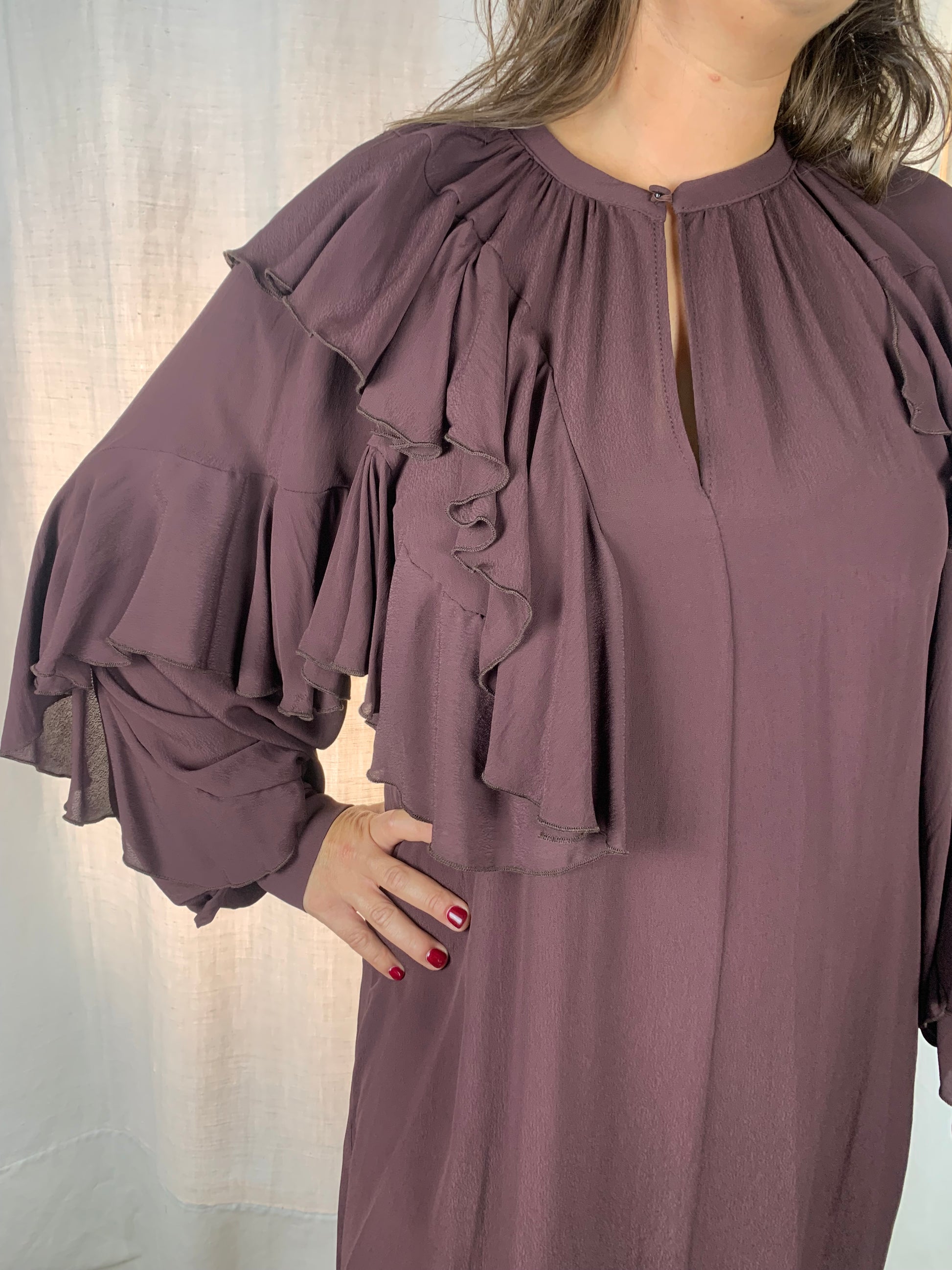 l'Angi indossa taglia M corrisponde ad una 44 e soprattutto ha un'ampiezza questo vestito che rende la sua vestibilità morbida