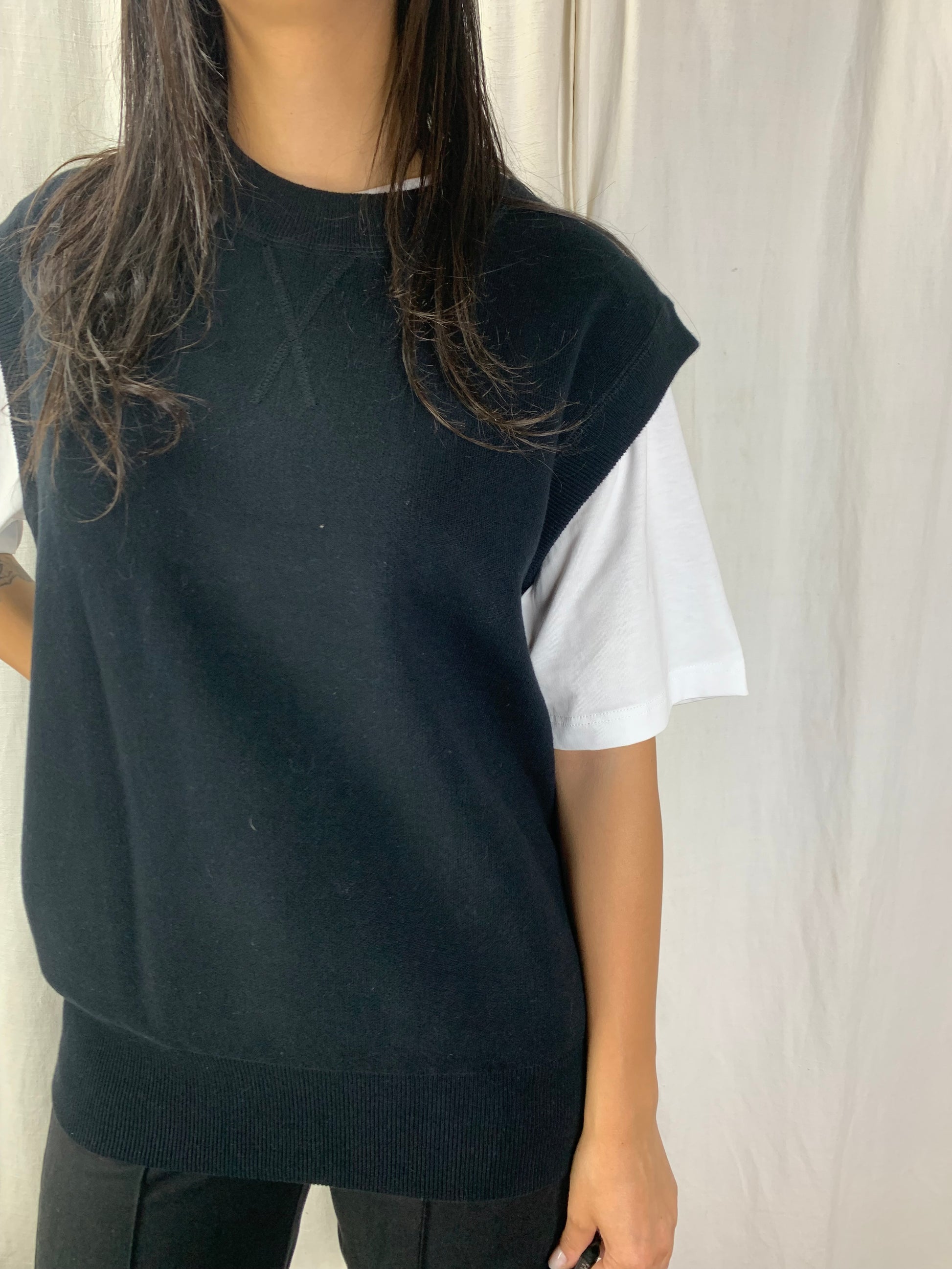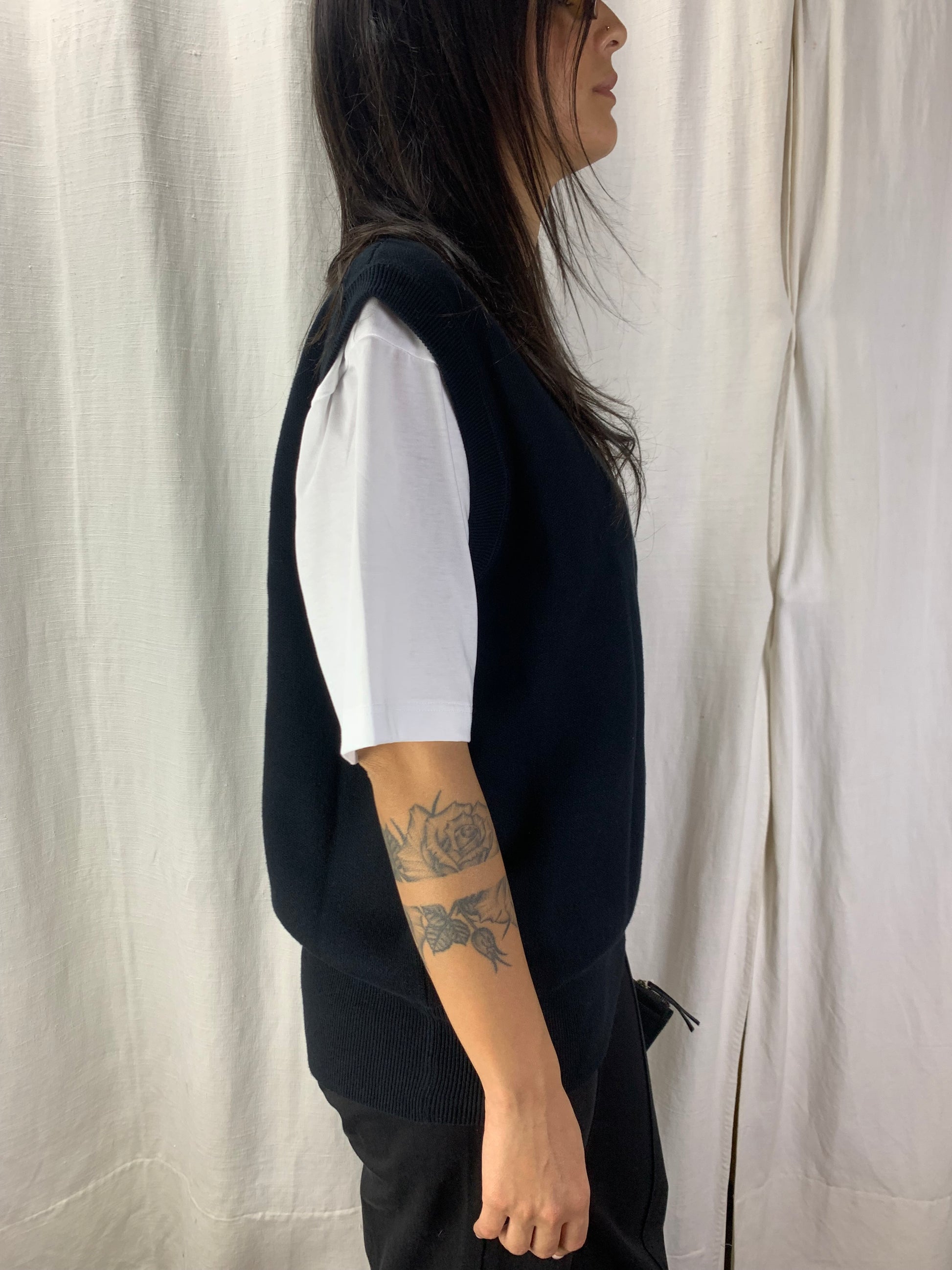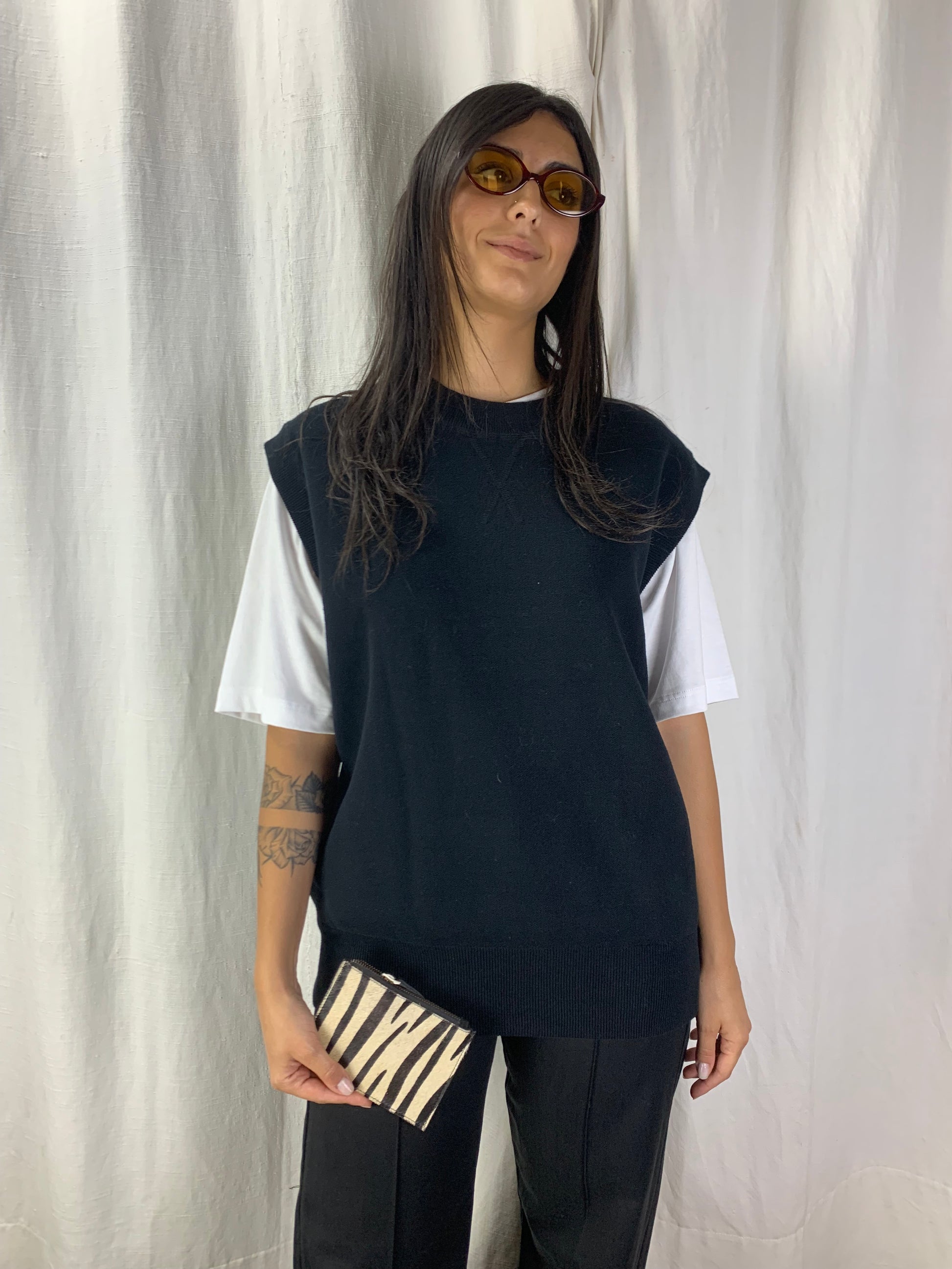 Gilet over con spalle larghe e rifiniture tipicamente sportive,in maglia di cotone perfetto per un look street style